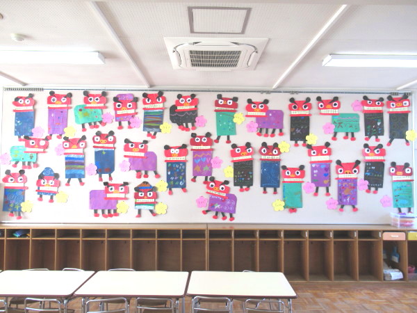 いろんなポーズがあり、とても面白い壁面に仕上がりました♪
