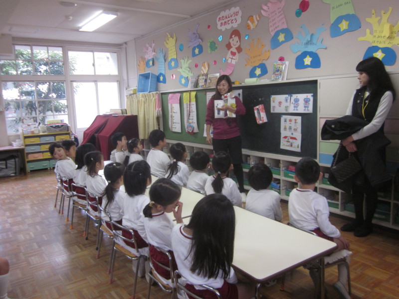 年長組は、英語と月刊絵本を行いました!!