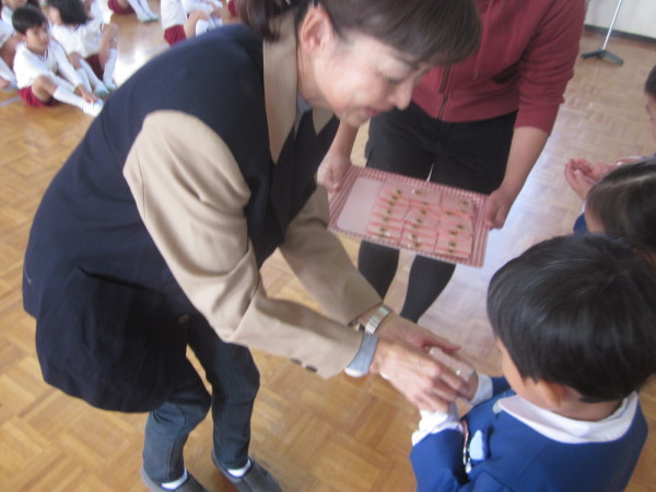 「世界には、ご飯を食べることができるか、できないかという人がいます。毎日ご飯を食べたり、おやつを食べたりすることができるみんなは、そのような人たちのことを思って、好き嫌いを言わずに、いただいたお食事は残さずきれいにいただきましょうね。」と教えてくださいました。