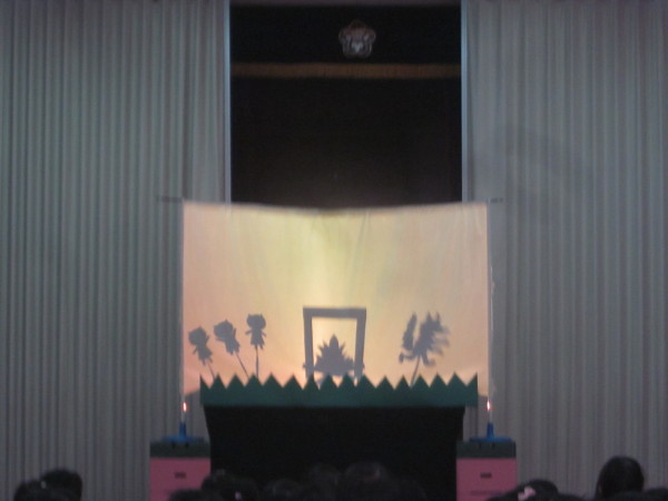 先生たちからのプレゼントは、影絵シアター「三匹のこぶた」でした!