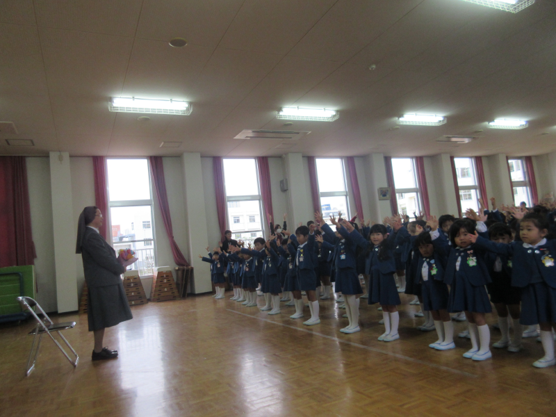 園長先生のお話では、「七五三の祝福式で、みんなの成長をお祝いできたこと」「今日から徳の花が始まり、マリア様のように優しい心で過ごせるように」とお話をいただきました。