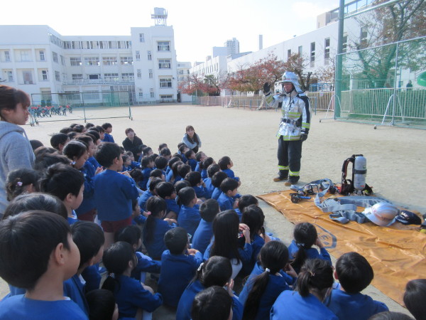 消防士の方からは、火災の恐ろしさや避難するときは「勝手な行動はしない、廊下は走らない、押さない」などの約束を教えてもらいました。