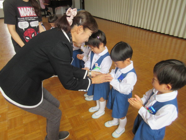 園長先生から、みんなで一生懸命力を合わせて頑張った運動会の思い出を大切にして、これからも沢山のことに挑戦していきましょうと、お話をいただきました。