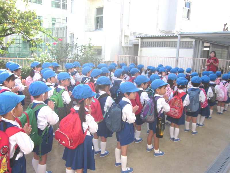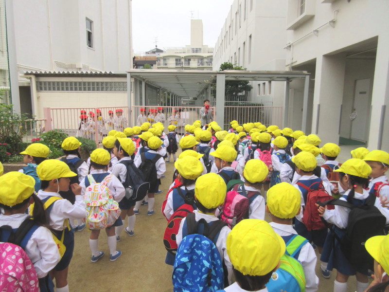 そして、荷物を持って園庭に並び、
