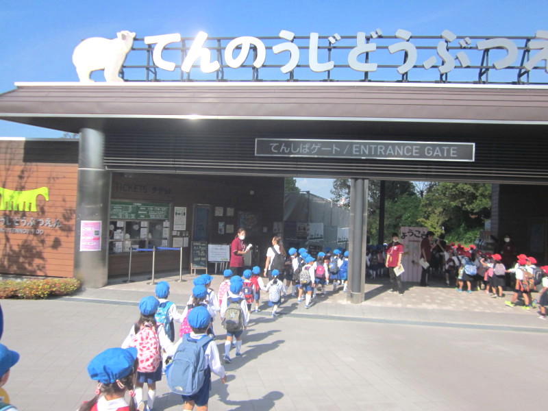 クラスのお友達とバスに乗り、天王寺動物園に到着!