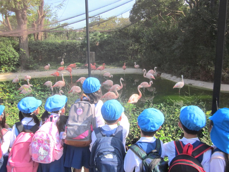 1本足で立っているフラミンゴのポーズを真似したり、寝ているフラミンゴがいたり…いろいろなフラミンゴがいました♪
