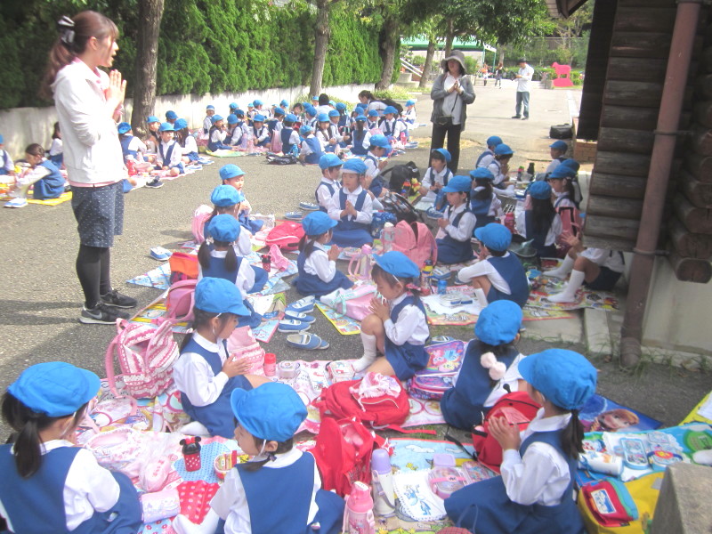 準備ができたら、園庭でお祈りをして園長先生のお話を頂いて出発です。