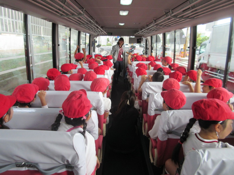 クラスのお友達と一緒に、バスに乗るのは初めての子どもたち!