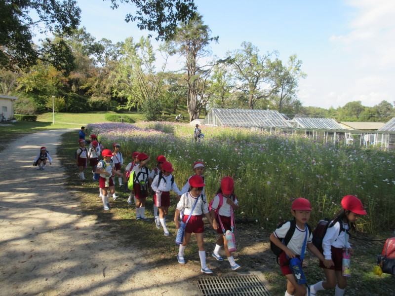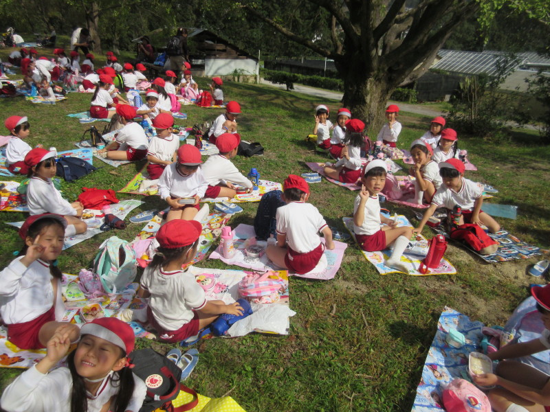 芋ほりが終わると植物園まで行き、みんなでお弁当を食べました。一仕事終えた後のお弁当はいつもよりも更に美味しかったようです(^^)
