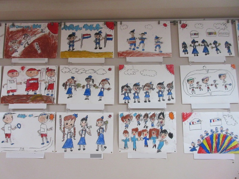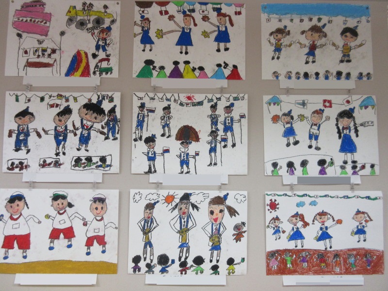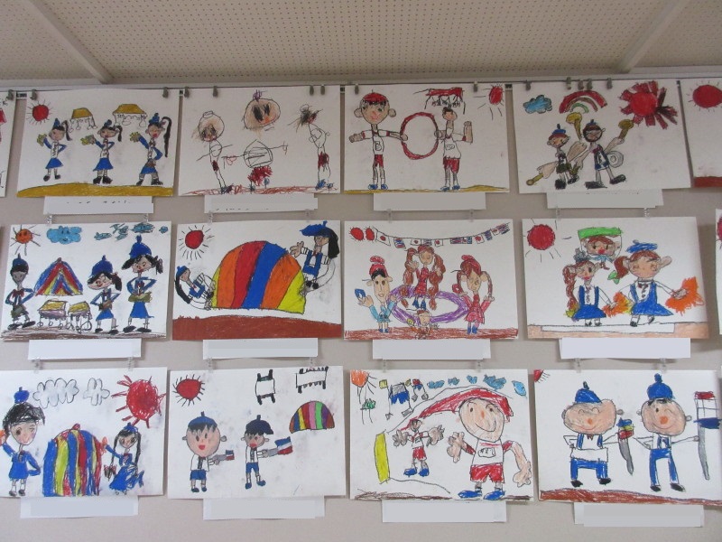 年長組の10月壁面は、クレパス画「運動会」です♪