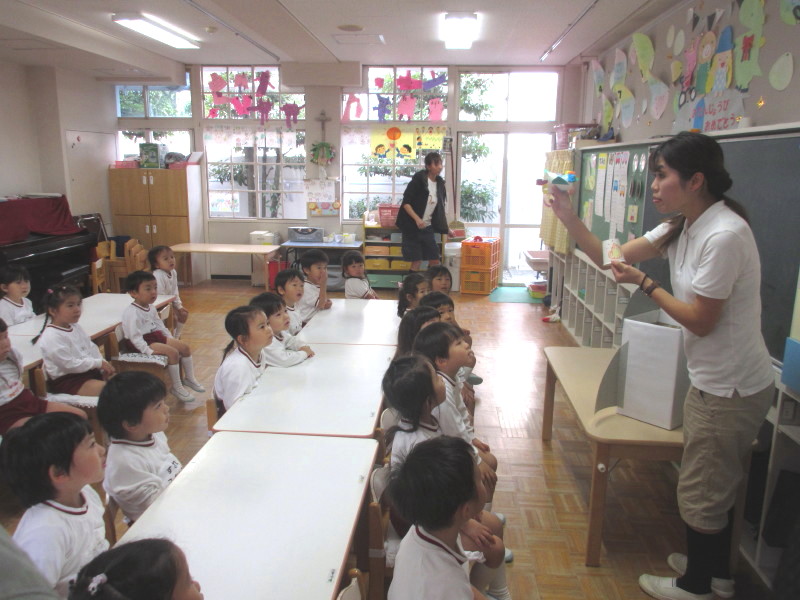 今日は、学年活動です!!遊戯室に年中組が集まって、合同朝礼をしました。お祈りをお捧げして、元気よく体操をします♪