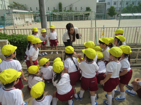 年少組閉会式では、青空の下、お友達と一緒に運動会が出来たことに