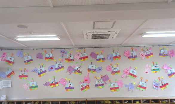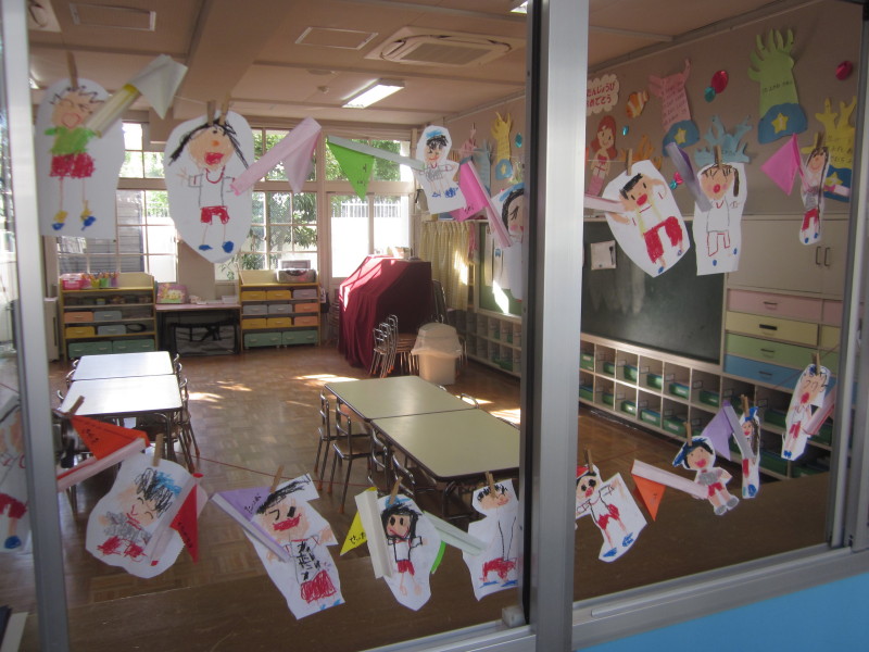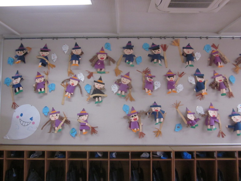 年中組では10月壁面「まじょ」と窓飾り「応援団〜運動会〜」を制作しました☆
