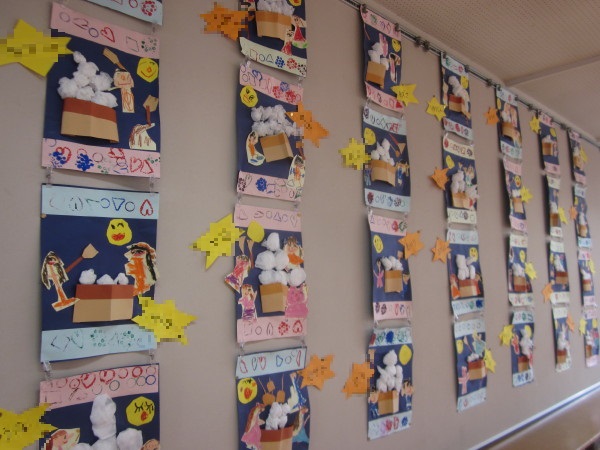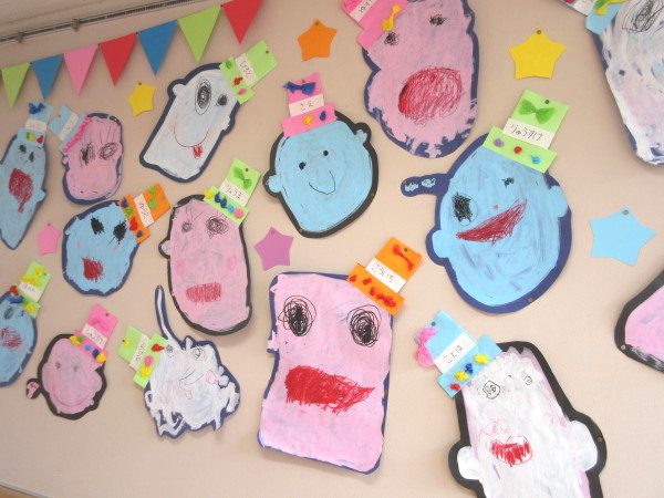 年少組では、9月壁面に『おばけ』を描きました(^^♪