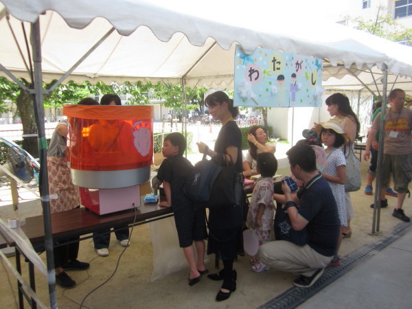 飲食コーナーでは、わた菓子にかき氷、ミルクせんべい、冷たいジュースがあり、おいしそうに食べる子どもたちの姿がありました