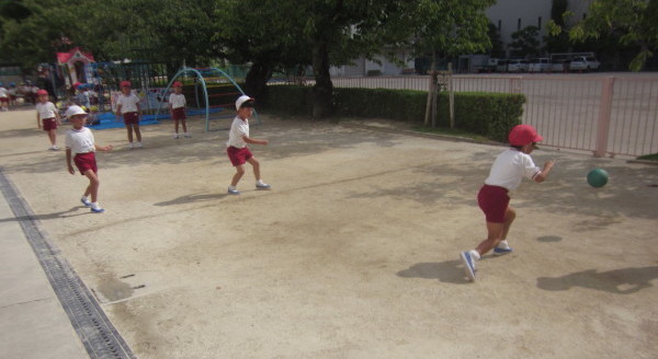 長い夏休みを過ごし幼稚園に来た子ども達は、お友達同士誘い合って鬼ごっこやドッヂボールを楽しんでいました(*^-^*)鬼ごっこでは学年問わずたくさんの子ども達で楽しむ姿が見られました♪ドッヂボールでは、「こっちこっち!」「危ない!」と大きな声で一生懸命!久しぶりの集団遊びに自然と笑顔が広がりました☆