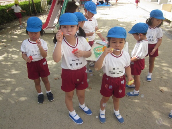 シャボン玉遊びでは、割れないようにそーっと膨らます姿が見られました☆