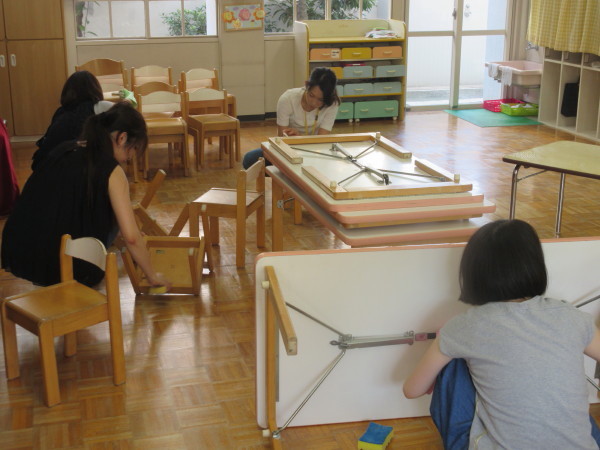 毎日子ども達が使う机や椅子もきれいにふいてくださり、ピカピカになりました!