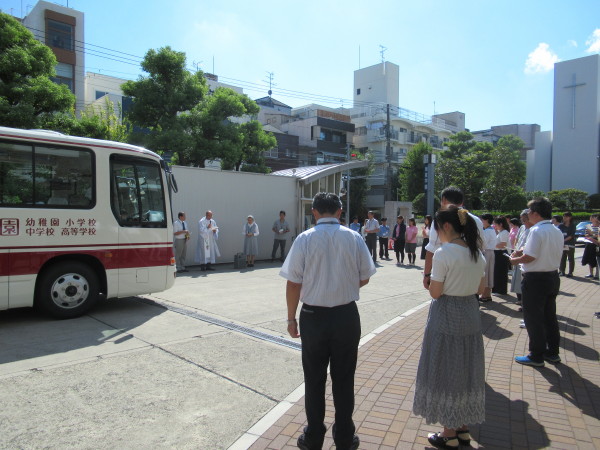 つい先日納車したばかりのバスも、ジョバンニ 神父様に「あらゆる危険、災害から守られ、園児の送迎がいつも安全におこなわれますように」と祝福していただきました。