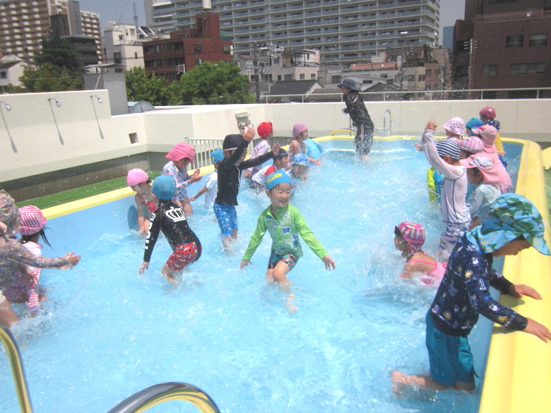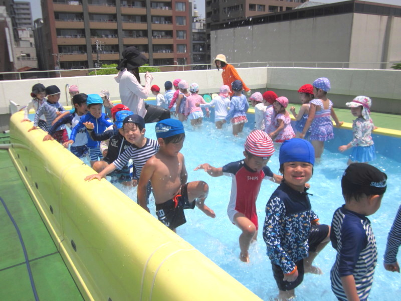 暑い日が増え、「早くプールに入りたい」と話をしている子どもたち!