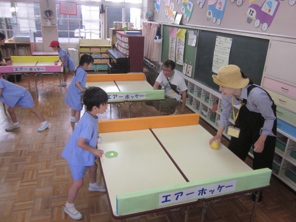 エアホッケーでは、「1点入った―!」「勝ったー!」など、熱い試合が行われました♪