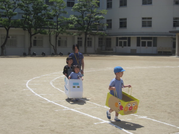 戸外では、グラウンドに電車コーナーやローラースルーゴーゴー、かけっこ、サッカーのコーナーを用意しました♪