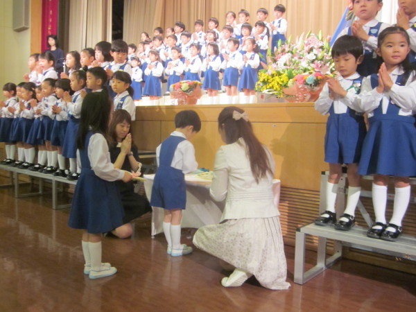 園長先生から、キラキラのおメダイをいただき、お祝いのお話をしてくださいました。