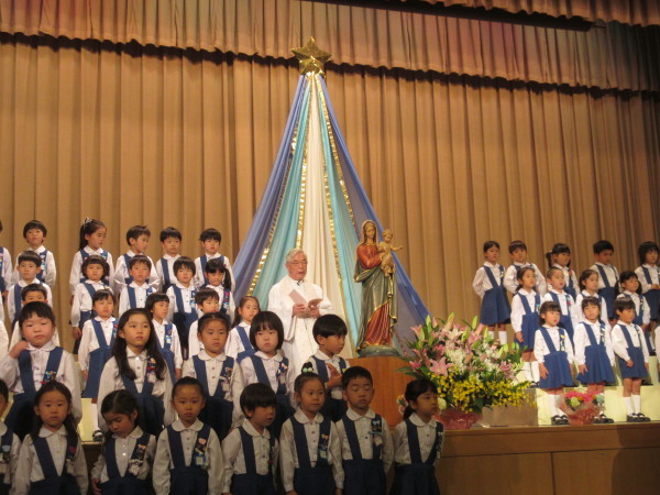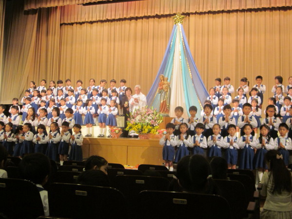 昨日のお天気と、気温の低さからは考えられないような、良いお天気の今日、沢山の保護者の方がご参集くださり、聖母祭が行われました。