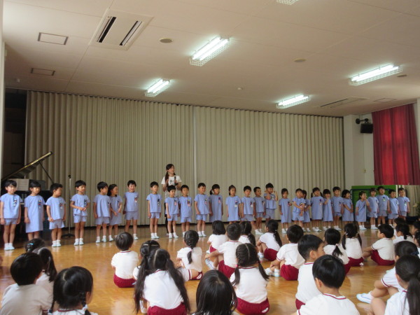 6月のお誕生日のお友達が前に並び、みんなで名前を呼んで紹介をしました。