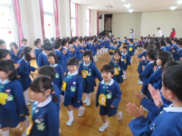 最後に年少組は、年中組・年長組からあたたかい拍手を受けて退場します!