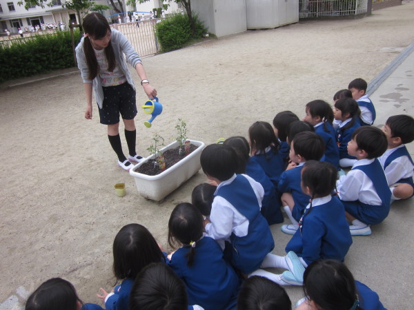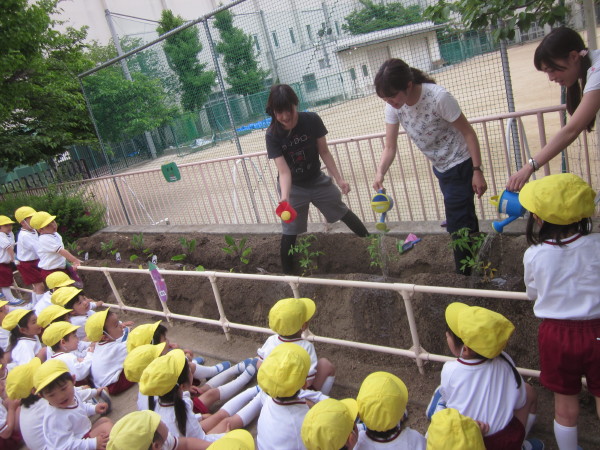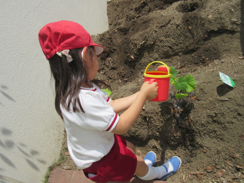 「おおきくなーれ、おおきくなーれ」という子どもたちの声が、園庭に響いていました(^o^)丿