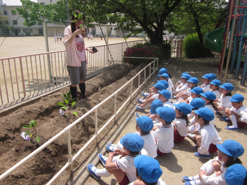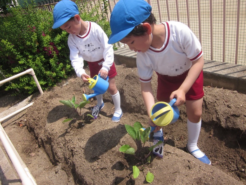 年中組は、“茄子”と“かぼちゃ”を植えました。