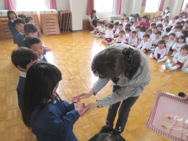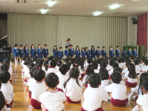 昨日の雨もすっかり飛んでいき、ぽかぽかのお日様が射した今日、新入園児歓迎会が行われました♪
