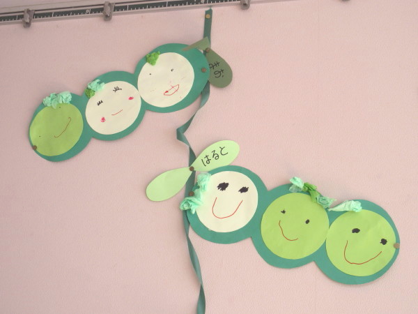 年少組の壁面は「さやえんどう」です(^O^)