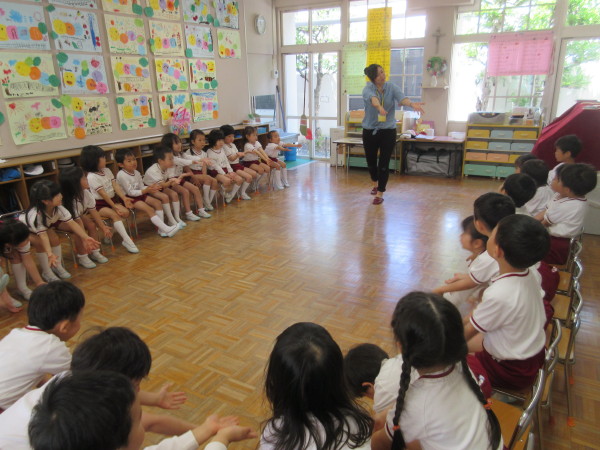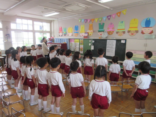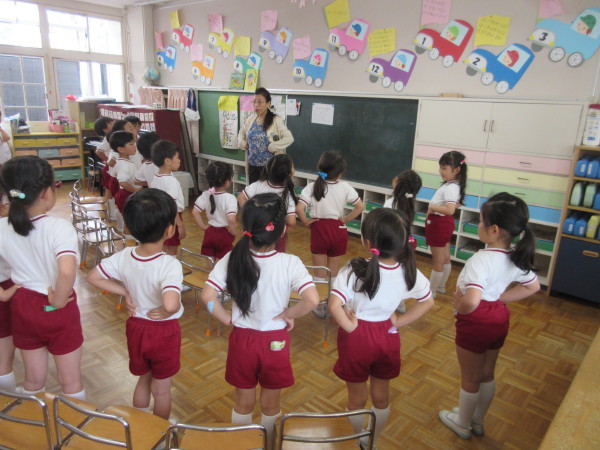 朝、子ども達に「年中組からは、英語が始まるよ!」ということを伝えると、
