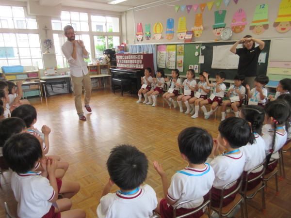 英語では、年長からネイティブの先生に変わり、