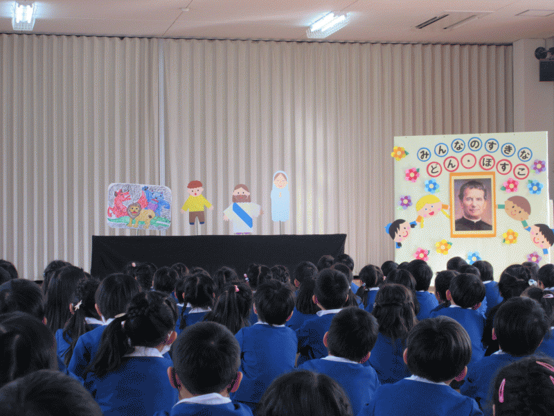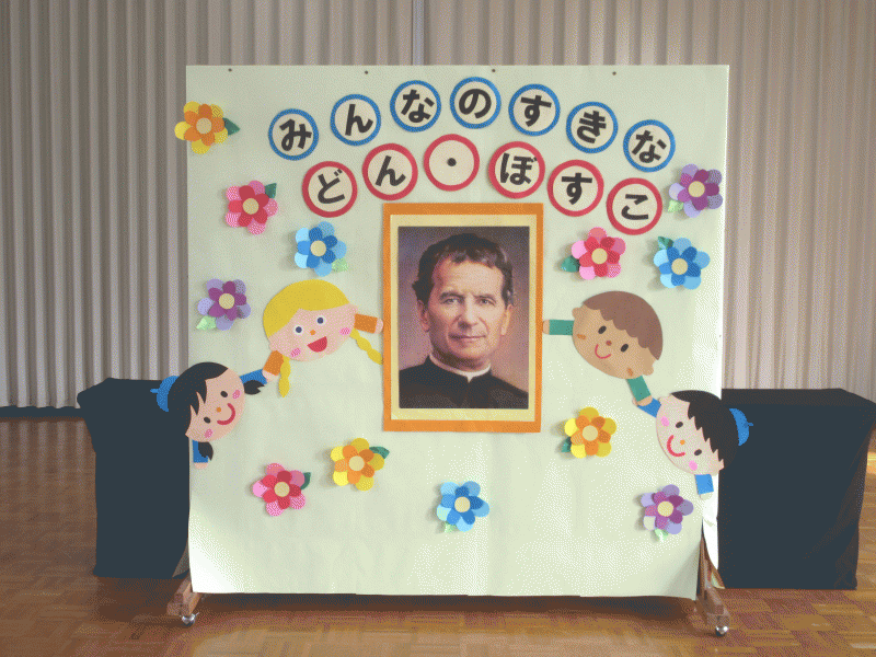 今日は、いつも見守ってくださっているドン・ボスコに、“ありがとう”の気持ちと、にこにこ笑顔を届けることができるように、遊戯室に幼稚園のみんなが集まって、楽しい時間を過ごしました(^O^)