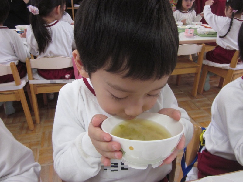 収穫した白菜は、給食調理員さんにより、お味噌汁に入れて頂きました☆