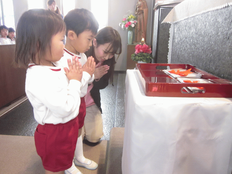 お友達と楽しく過ごすことができるようにお祈りをしました。