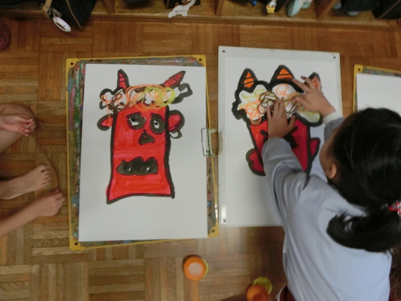 顔と体が出来た子どもから、自分なりに顔を描きました。