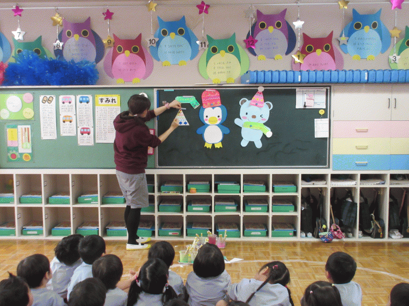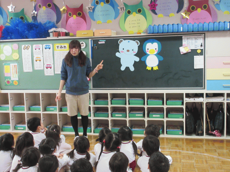 英語では、ネイティブの先生に来ていただいて色や数字、ダンスなど楽しんで取り組む姿がありました♪