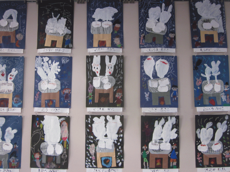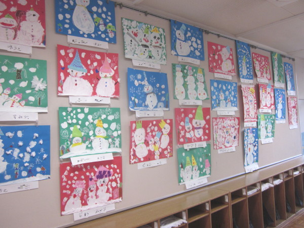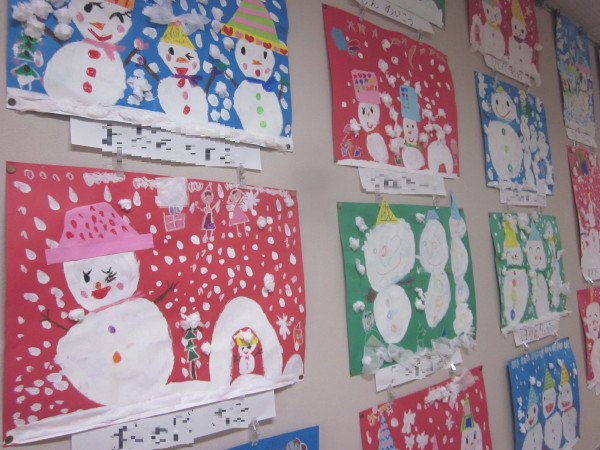 年中組では、絵の具で雪だるまの絵を描きました(o^▽^o)☆