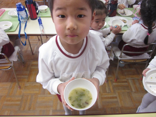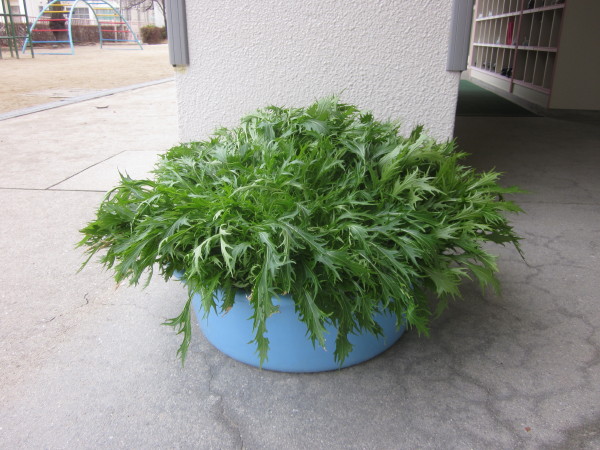 給食のお味噌汁の具に、水菜を入れて頂きました☆