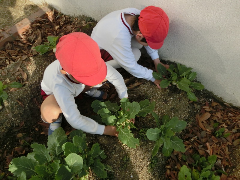 ☆水菜とかぶを収穫しました☆〜年中組☆