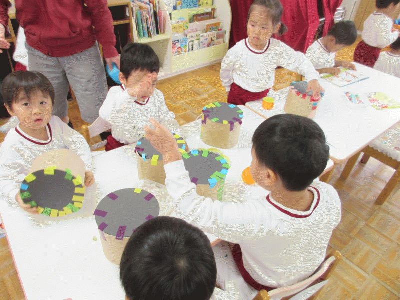 デコレーションが出来上がると… 楽器ごとにリズム遊び♪