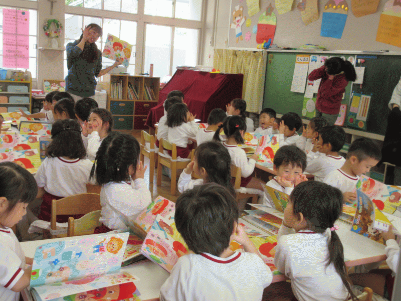 保育者からのプレゼントでは、OHPシアター「いいからいいから」のお話をしました。