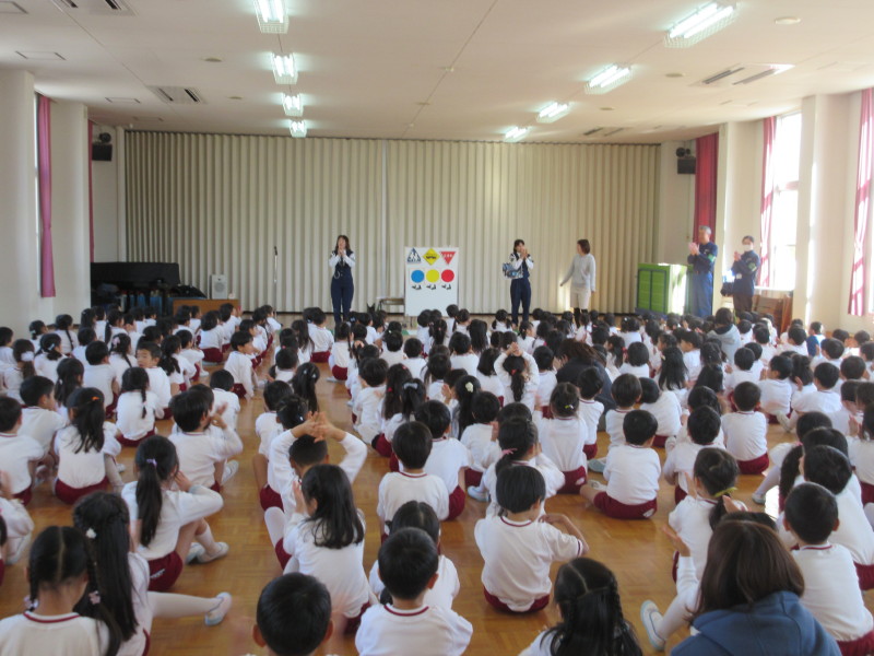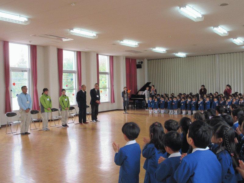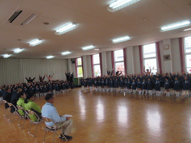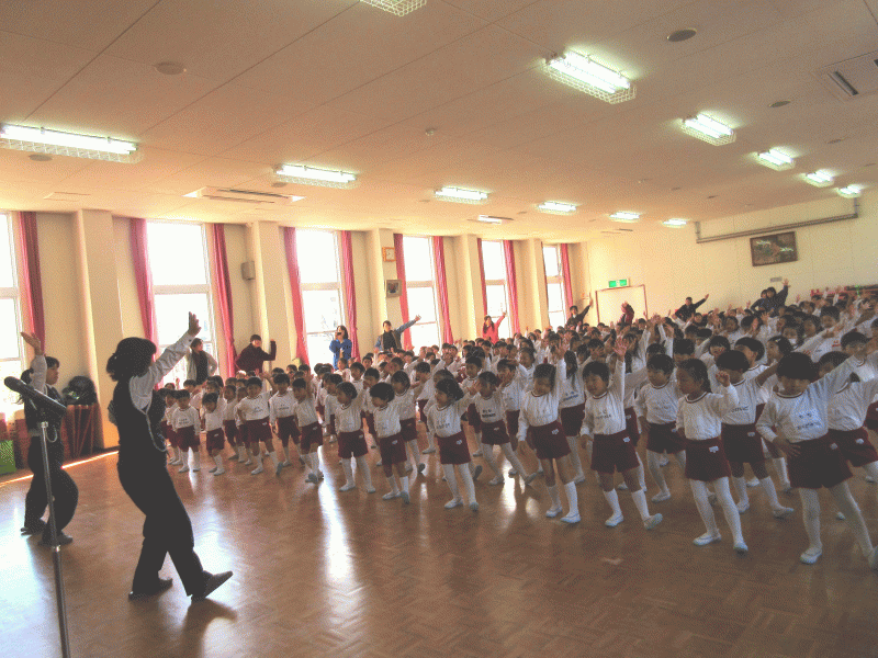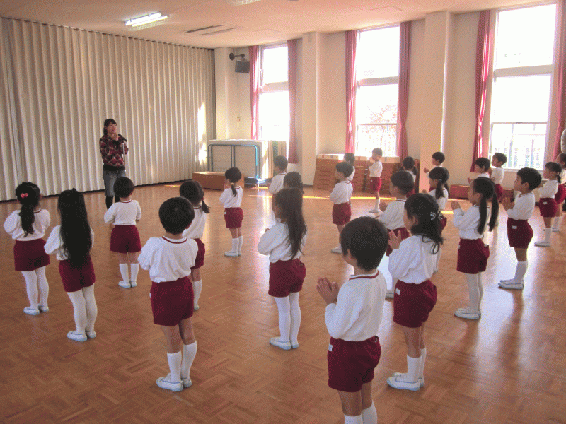 今日、幼稚園の皆が遊戯室に集まって、