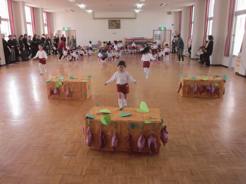 頑張って積み重ねをしていた分、本番では堂々とした発表を見せてくれて、お家の方に幼稚園で頑張っているところを見て頂き、喜ぶ姿がありました(^o^)