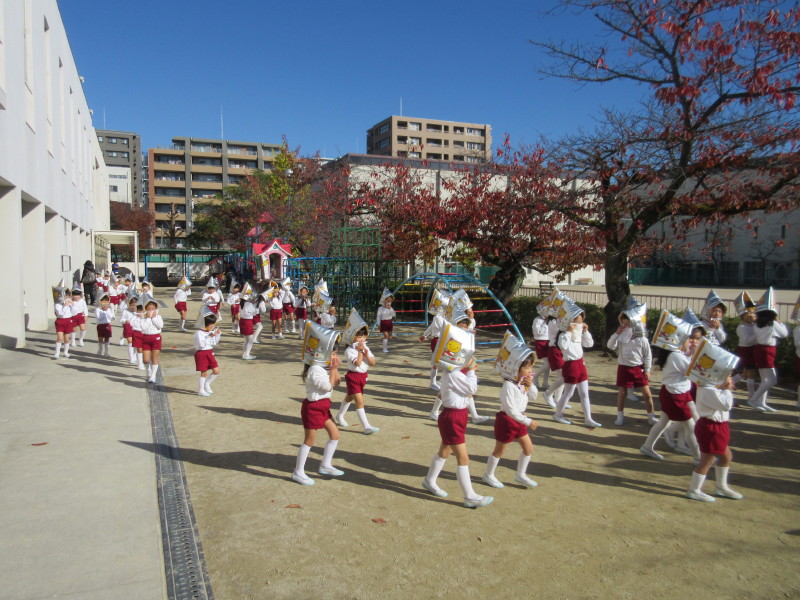 そして、カスタネット・すず・トライアングル・タンブリン・シンバル・小太鼓・大太鼓など、たくさんの楽器を使って「ミッキーマウスマーチ」の合奏を行いました♪