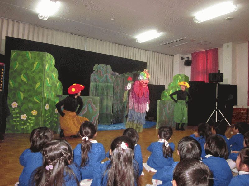 遊戯室に上がると、人形劇の舞台が準備されていて、